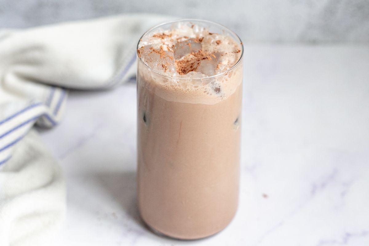 Add the ice to a tall glass. Pour the chocolate cappuccino over the ice. Top with whipped cream, milk foam, or a sprinkle of cocoa powder (optional).