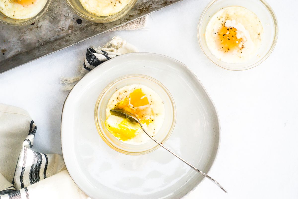 Divide the salt and black pepper between all the ramekins as well as the crumbled cotija cheese. Bake for 10-12 minutes or until the whites of the egg is cooked and the center is gooey. Add additional minutes for desired doneness. In the last minute of cooking, add 1 tsp heavy cream to each ramekin and continue baking until total time has elapsed. Serve hot and dip with keto bread.