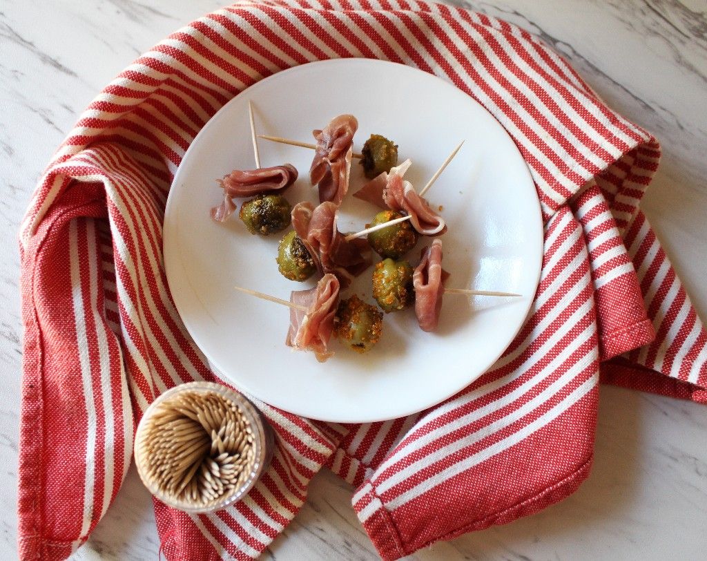 Keto Fried Olive and Prosciutto Ribbon Bites