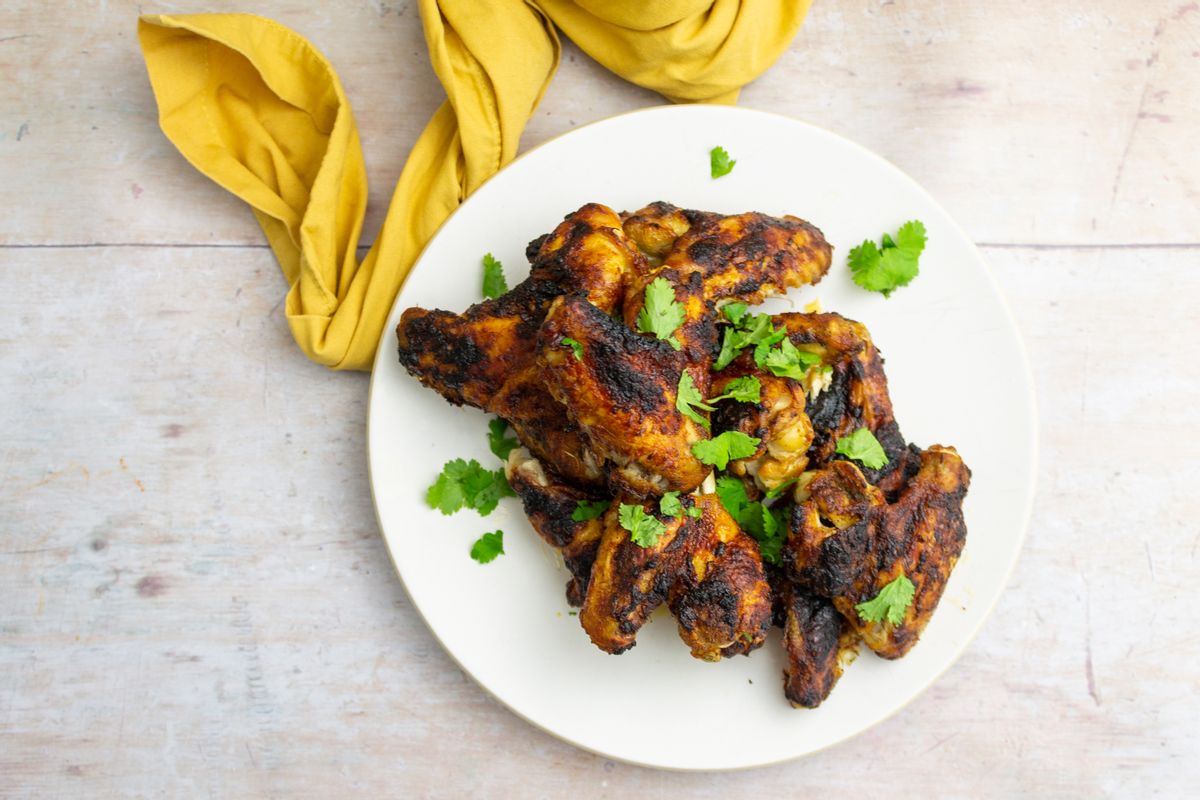 Preheat the oven to 400 degrees Fahrenheit. Add the chicken wings to a large bowl. Sprinkle over a heaped teaspoon of ground coriander, garlic powder, salt, and pepper. Mix well, using your hands to coat the wings in the spices and seasonings.Step 2