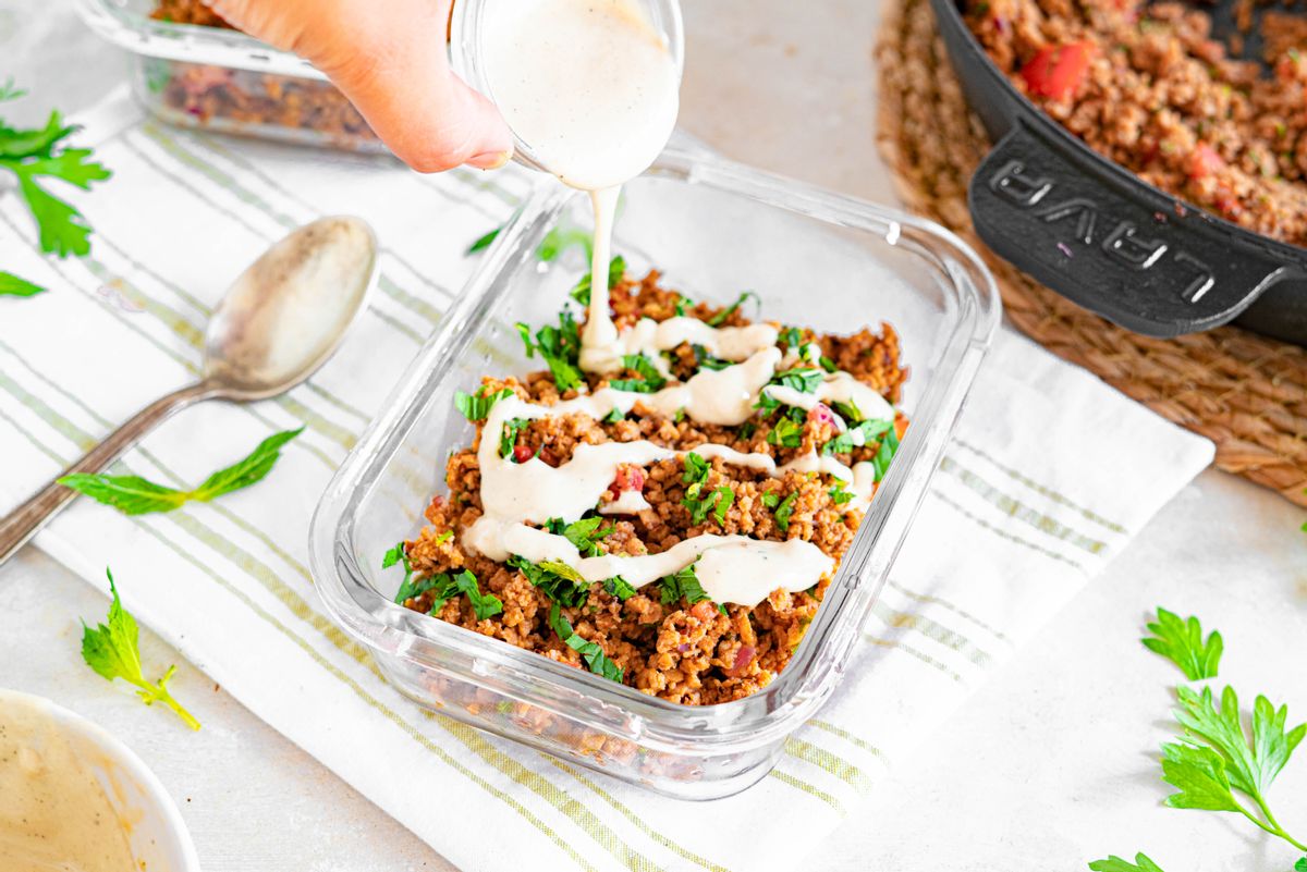 Keto Vegan Shawarma Meal Prep with Tahini Dressing