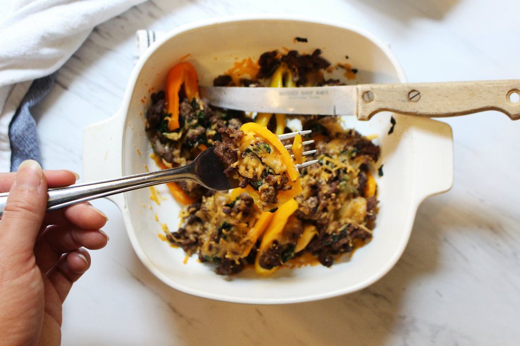 These mini sweet peppers are filled with seasoned ground beef, a handful of spinach, and are topped off with some gooey, melted cheddar cheese! This recipe makes two servings, which is the perfect light lunch. If you’re feeling extra hungry, you can still stick to your Keto diet and enjoy the whole dish to yourself!