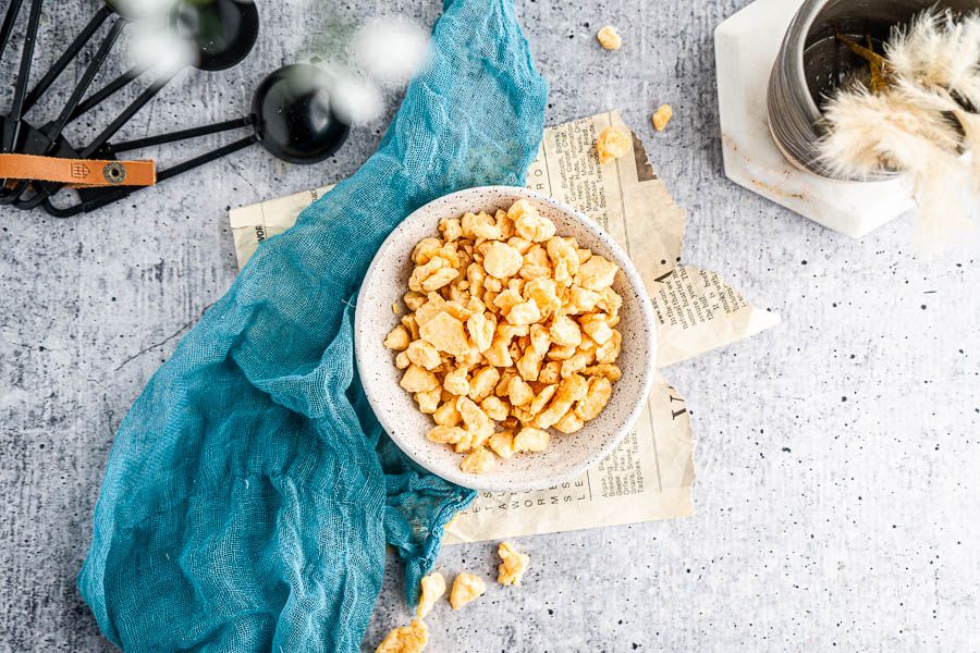 If you miss popcorn, you will love our low carb version made with cheese. Extra sharp cheddar cheese is crumbled into a “popcorn” like size onto a baking sheet. The cheese is then dried out for several days to eliminate any excess moisture. Once dried, the cheese is placed into an air fryer to puff up and crisp. You can use this popcorn as a base for a multitude of Keto-friendly seasonings like salt and pepper for a classic combo, cayenne for a spicy kick or even sweetener for a sweet/salty blend.