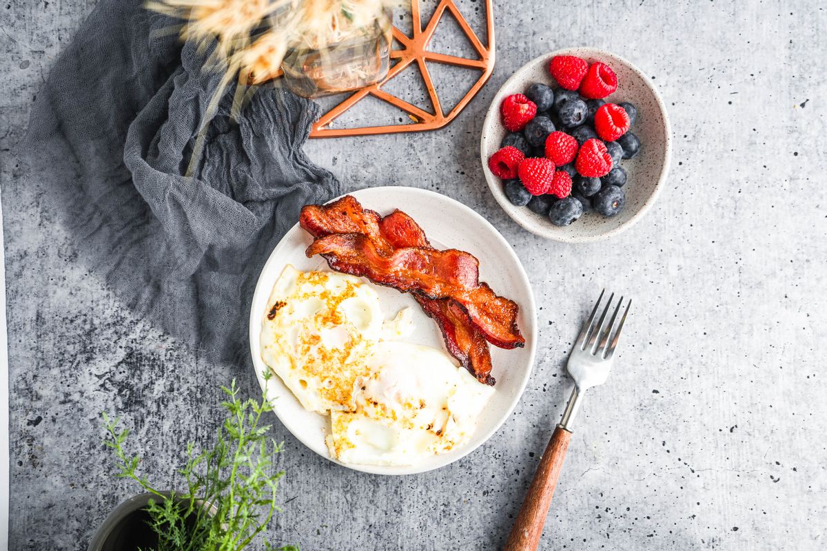 Our easy Paleo breakfast is a classic recipe filled with plenty of animal protein and healthy fats. While this recipe is written for two pasture-raised eggs and two slices of bacon per person, you could easily add more of each. Simply add on extra eggs or bacon to your Carb Manager Daily log. I love how this recipe is filling and keeps you satisfied until lunchtime. The eggs and bacon are paired with deliciously ripe and juicy red raspberries, which are perfectly low in their glycemic index but have some carbs to keep you going. Be sure to source uncured and even pasture-raised bacon and eggs for this recipe, as they are higher in Vitamin D, choline, and Vitamin A.