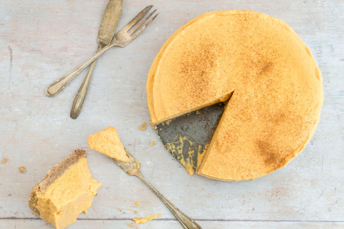 This Keto dessert recipe has a no-bake filling. The base, however, is briefly baked to give it a toasty biscuit flavor. Once prepared, the filling is layered over the base and simply requires chilling time in the fridge to firm up. If you would like to go for a completely no-bake Keto dessert, you can skip the process of baking the base. Simply prepare the recipe as instructed, placing the base in the fridge to set and firm before adding your pumpkin filling. Be sure to adjust your macros to account for any changes you may make to the recipe.