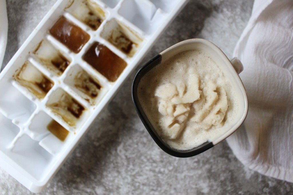 12-24 hours ahead, brew your coffee you will need to brew the coffee and pour it into an ice cube tray. Place it in the freezer. A ¾ cup of coffee should make approx. 6 ice cubes.Step 2