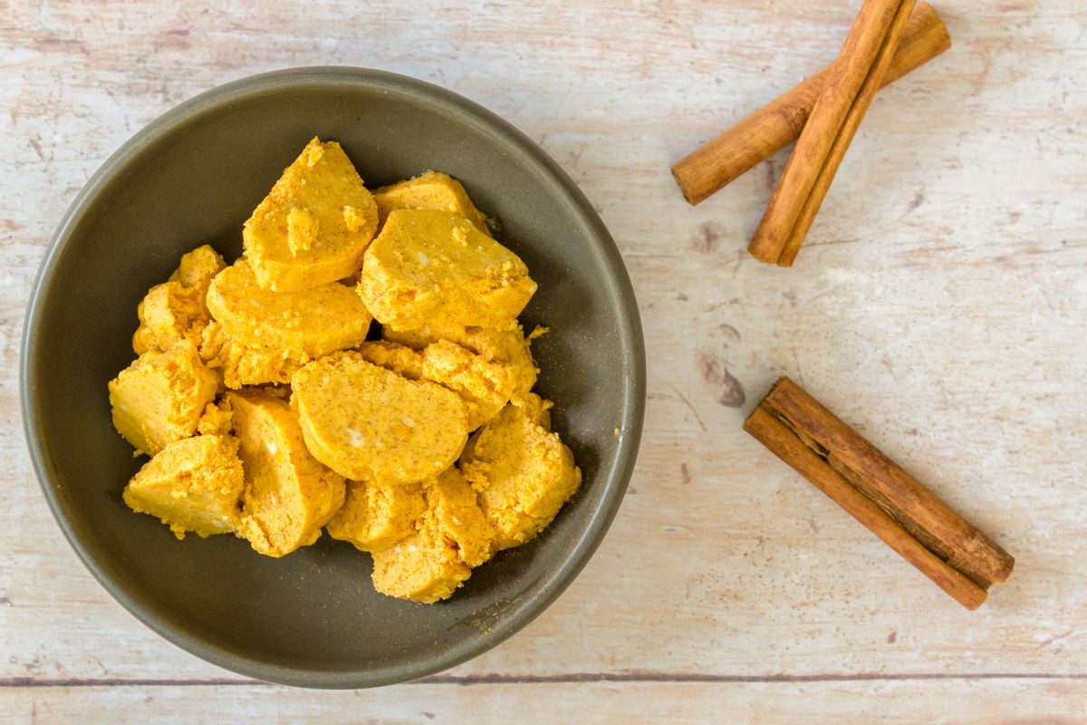 Bring the butter to room temperature so that it is very soft. Add to a mixing bowl with the pumpkin purée, ground spices, salt and erythritol. Beat together until smooth and well combined. If your butter is not very soft you can also blend this in a food processor.Step 2