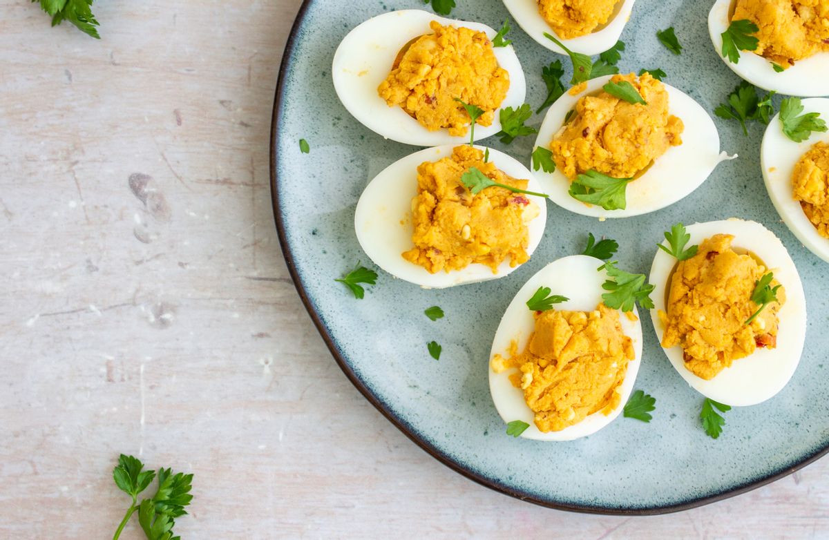 Keto Harissa and Tahini Deviled Eggs
