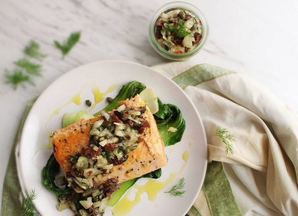Keto Crispy Mediterranean Salmon With Bok Choy