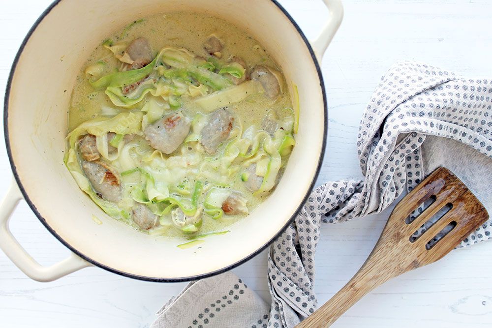 Low Carb Sausage Pasta in Creamy Mustard Sauce