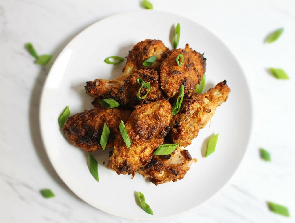 Bake the wings for 40-45 minutes until they have a crispy outside and are piping hot all the way through. For garnishing, chop the green onion and sprinkle over the top of the wings. Enjoy!