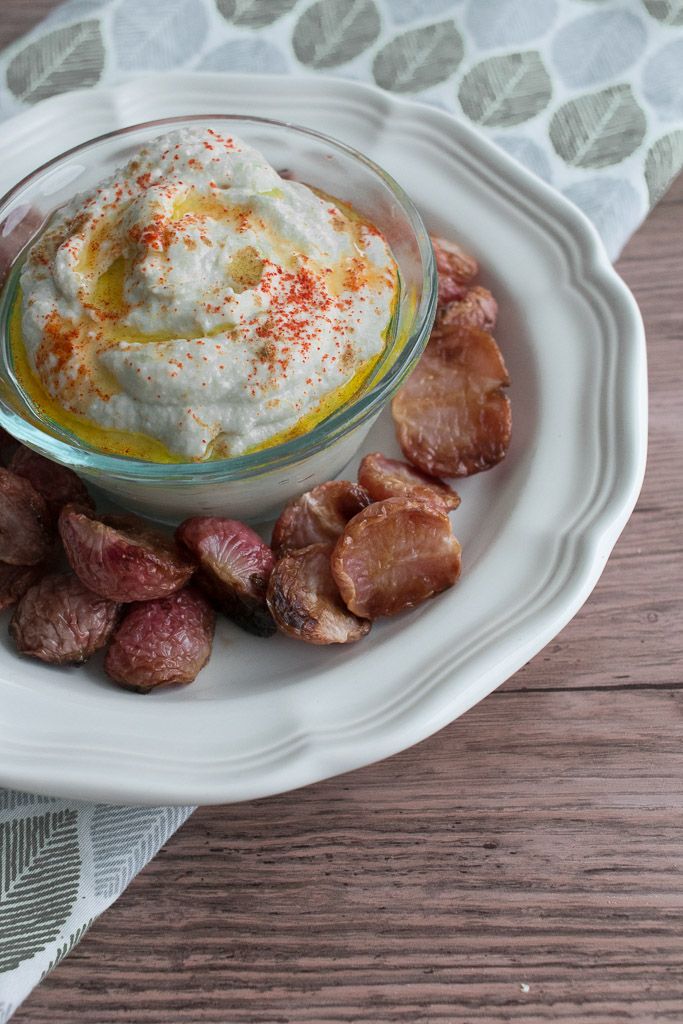 Low Carb Cauliflower Artichoke Hummus With Roasted Radishes