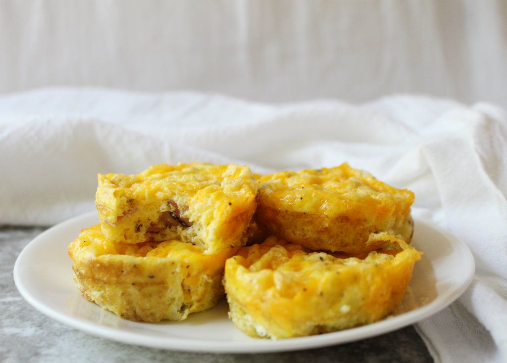 Bake the tray for 13-15 minutes, until the eggs have set. Allow to cool slightly before removing from the muffin tins. The egg may rise during baking, but it will sink down to “muffin top” size while cooling.
