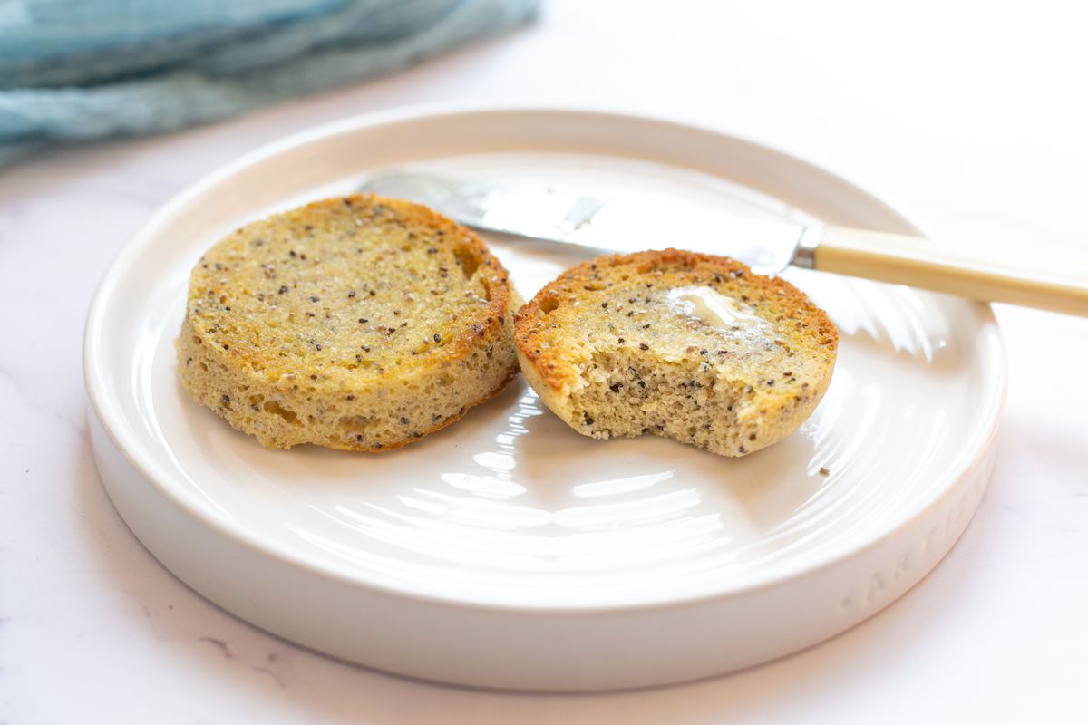 If you’re not sure what the power of your microwave is, then start by microwaving the bread for 60 seconds, and check the texture is dry but moist and bouncy. If it’s still on the gooey side, return to the microwave and cook for further 10-second intervals until the center is set.
