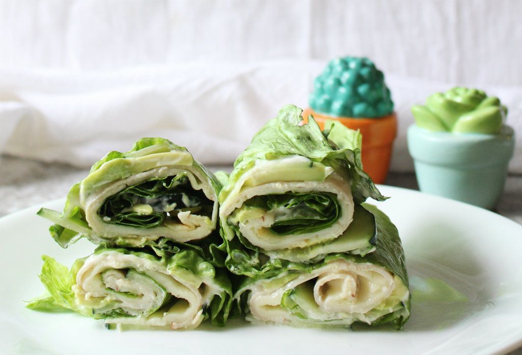 This quick and easy lunch can be made in under 15 minutes! Giant leafy greens are filled with hot turkey and provolone cheese as well as crisp cucumber and creamy avocado. A smear of mayo across your lettuce wraps adds a healthy dose of fat to your meal.