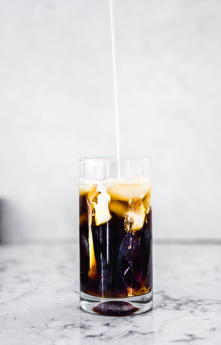 Brew the coffee double strength. Place it in a container or your vessel of choice, and transfer it to the fridge to cool completely. It's best if you prepare it the night before and let it chill overnight.Step 2