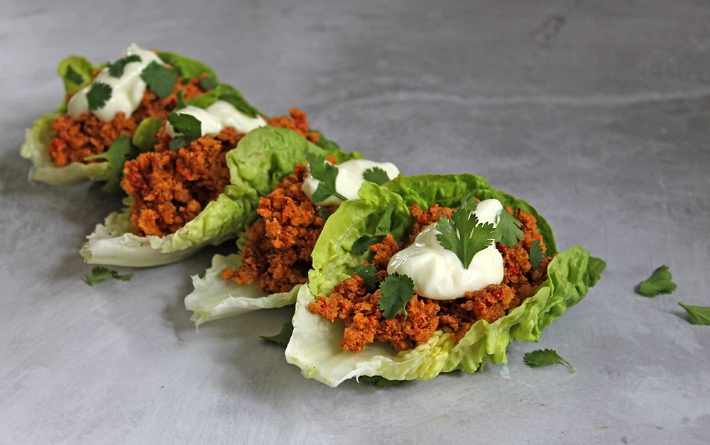 These low carb tacos use walnuts in place of ground meat, blended with a mix of herbs, spices and sweet roasted pepper.