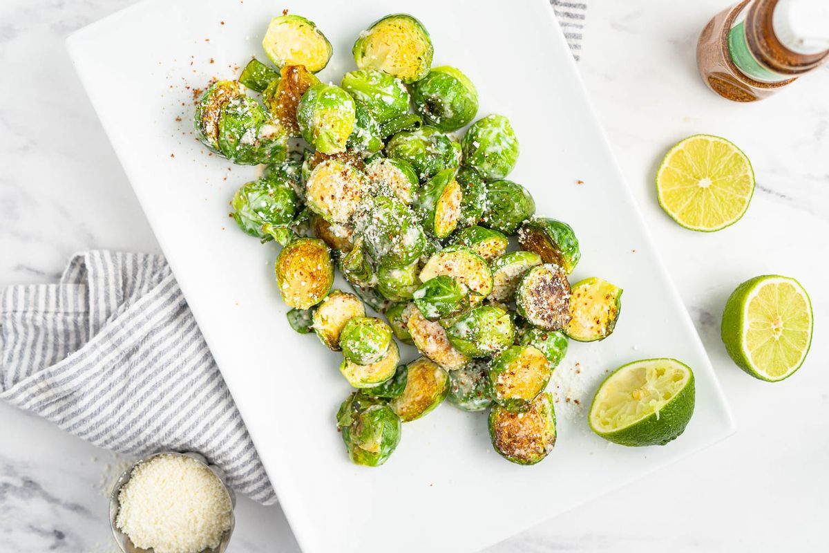 You should taste the nice golden sear on the sprouts with a nice hint of lime, salty, savory cheese, and a little spice! There should be a nice balance between all the flavors.