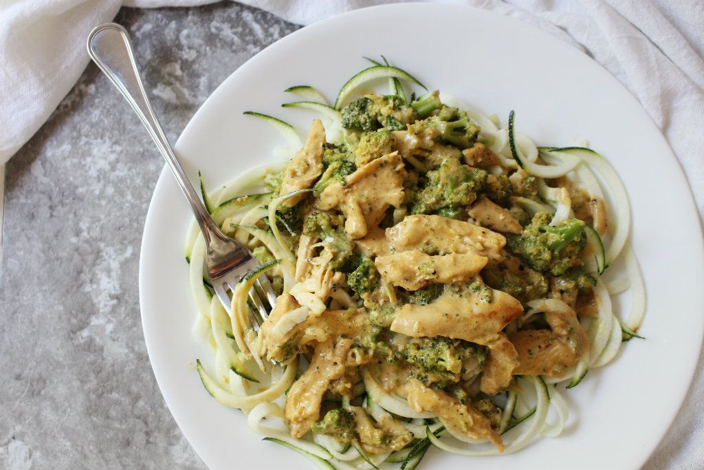 Low Carb Chicken Broccoli Cheddar Zoodle Pasta