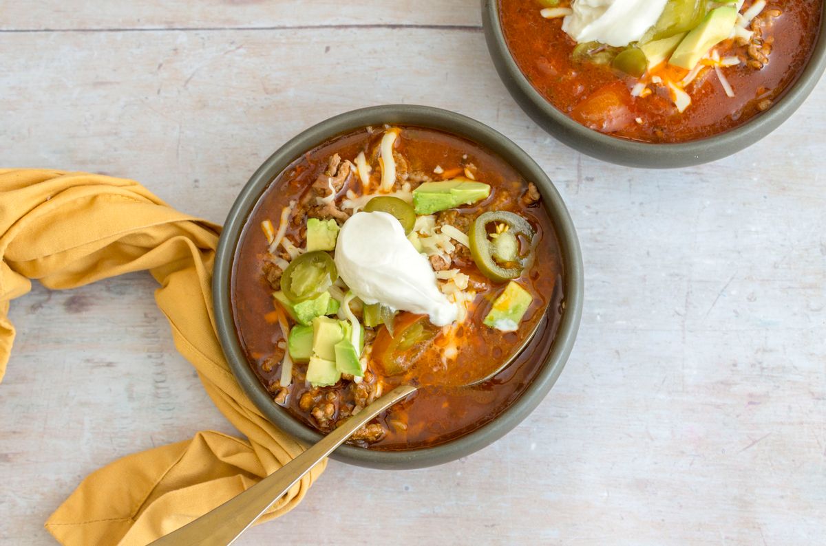 This Keto take on taco soup is rich with a tomato infused broth, juicy ground beef, aromatic spices and served with classic taco toppings. Our warming Keto soup is a great way to enjoy all your favorite taco flavors, guilt-free and minus the carbs! This makes a great option for lunch or dinner, optionally served with Keto tortillas for dipping.