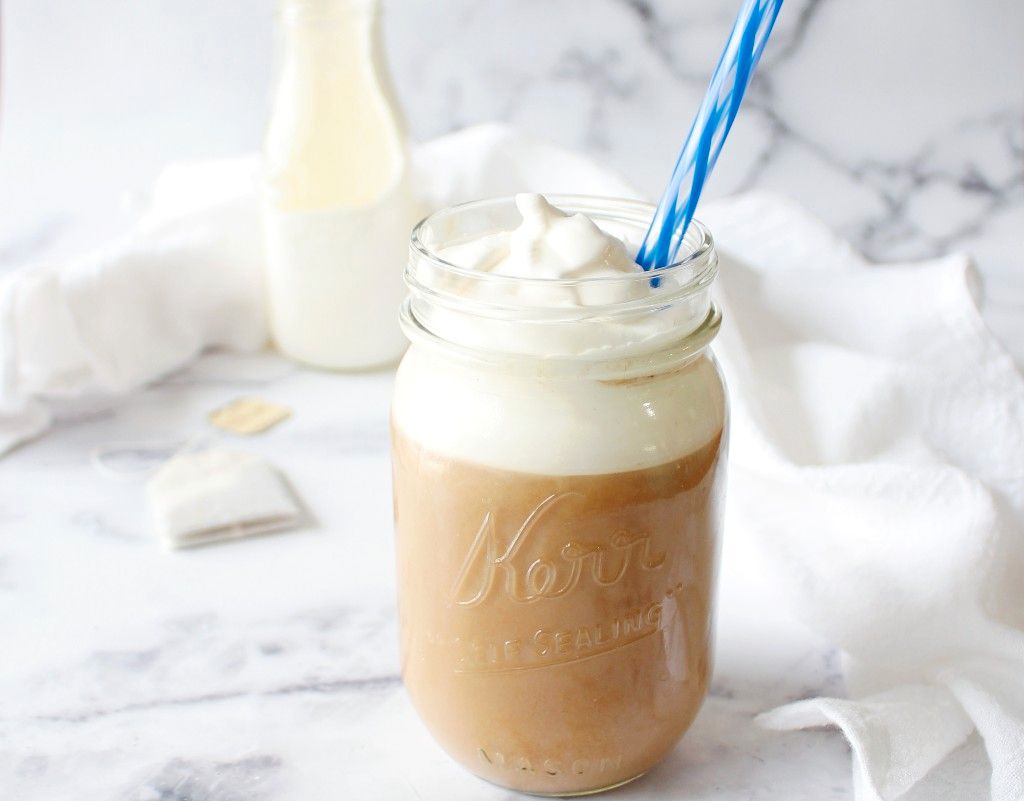 Brew your tea and coffee the night before so you can chill them overnight in your refrigerator. The next morning, assemble the latte, then pour it over ice. Save the whipped cream for last to pile on top of the coffee. You can also blend the dirty chai latte with ice in your blender.
