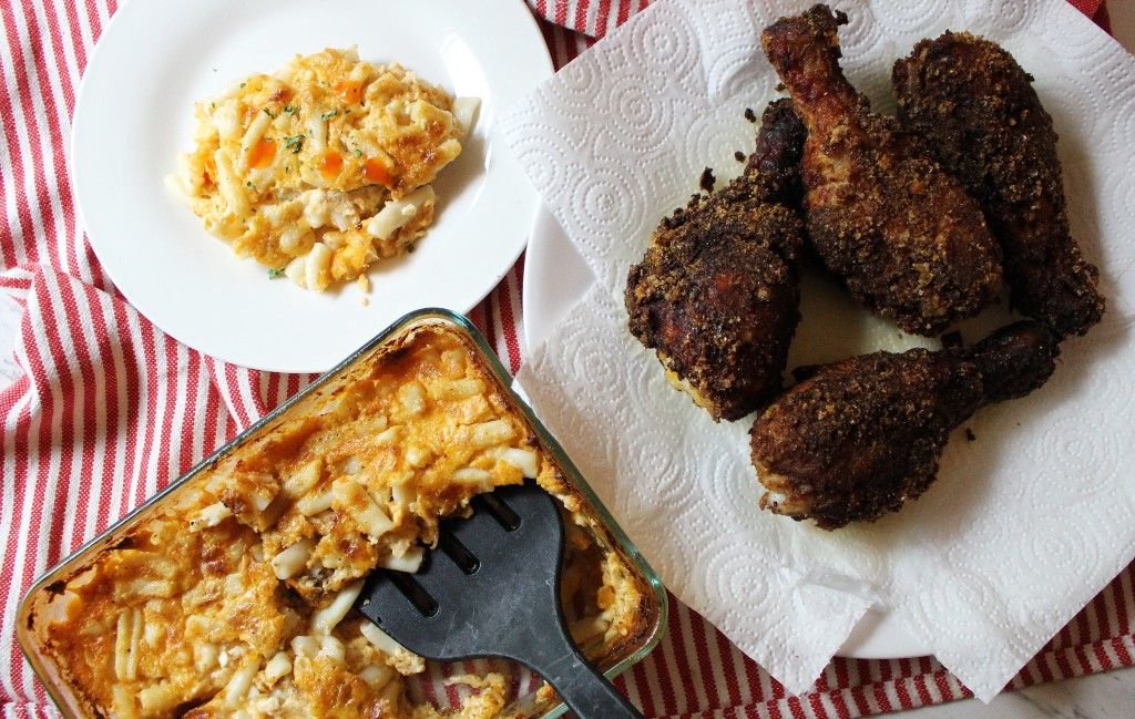 Low Carb Crunchy Chicken Drumsticks w Baked Macaroni