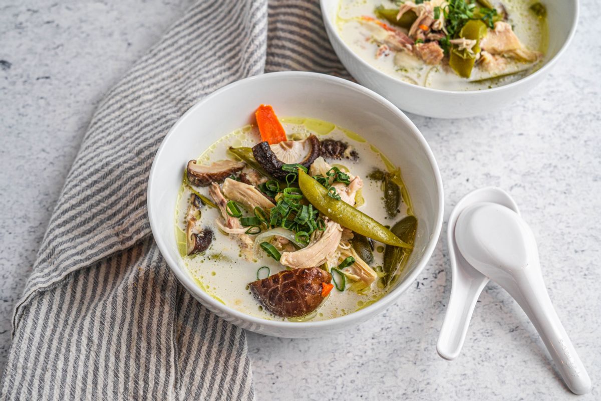You will love this fun take on a Keto Instant Pot chicken soup! Chicken thighs are simmered until tender and falling apart, creating a delicious, flavorful broth. Vegetables are added to the broth, including a small amount of carrot, shiitake mushrooms, onion, bell peppers, and snap peas. Creamy coconut milk is also added to the broth to make it rich and delicious. A dash of fish sauce brings out all the umami flavors of the broth. Once the vegetables are perfectly cooked, the hot soup is ladled into bowls, each topped with freshly sliced scallions.