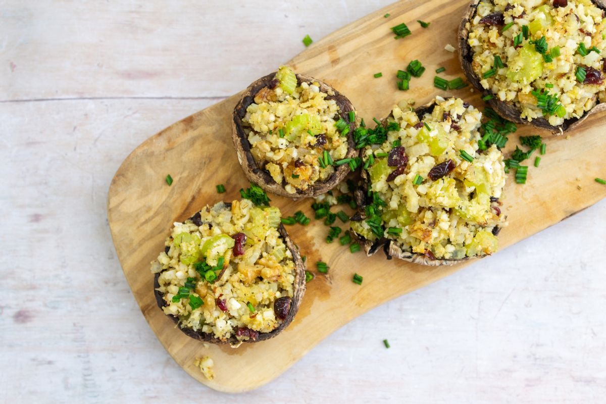These low carb stuffed mushrooms make a great vegetarian side or appetizer for the Keto Christmas table. Our flavorsome mushrooms are prepared with a low carb stuffing mixture of tender celery, onion and garlic, cauliflower rice, toasted ground almonds, sweet cranberries, crunchy walnuts, and a hint of zesty orange. These make a great alternative Christmas dressing served alongside your festive Keto mains.