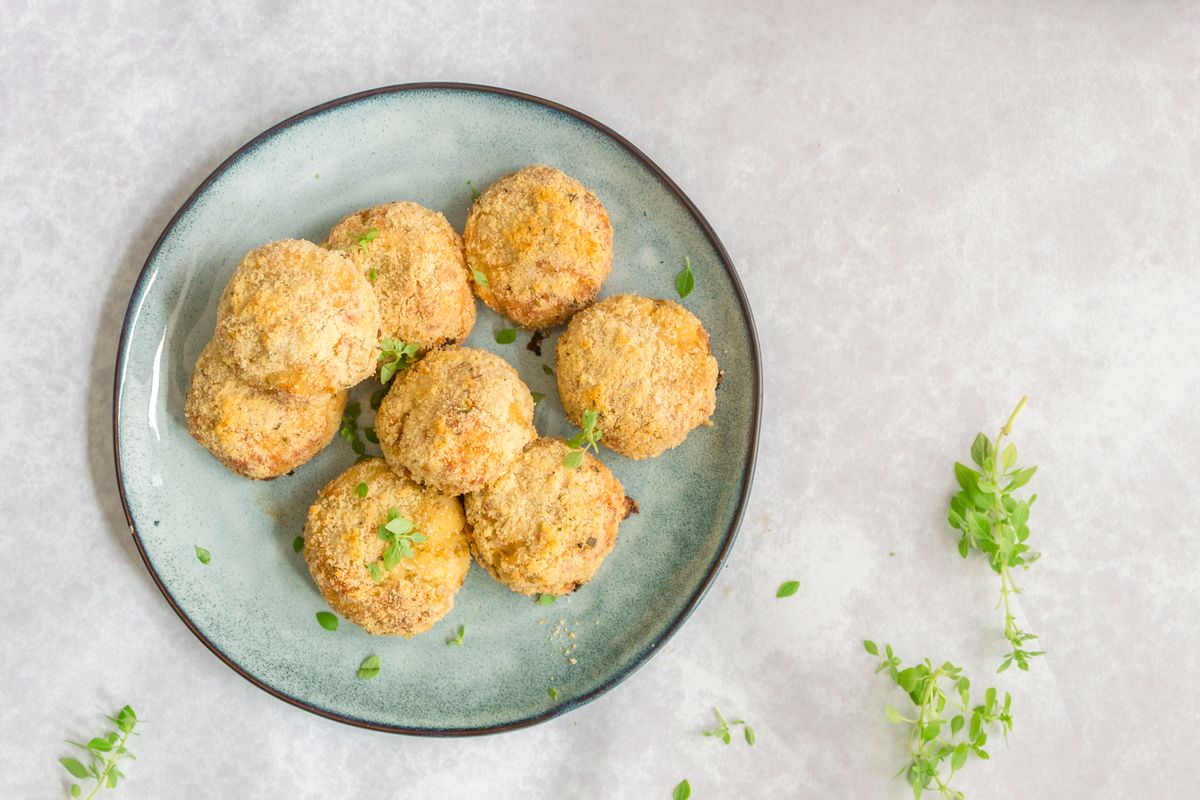 This low carb take on a classic arancini uses cauliflower in place of rice and a ground almond breading for the outside.