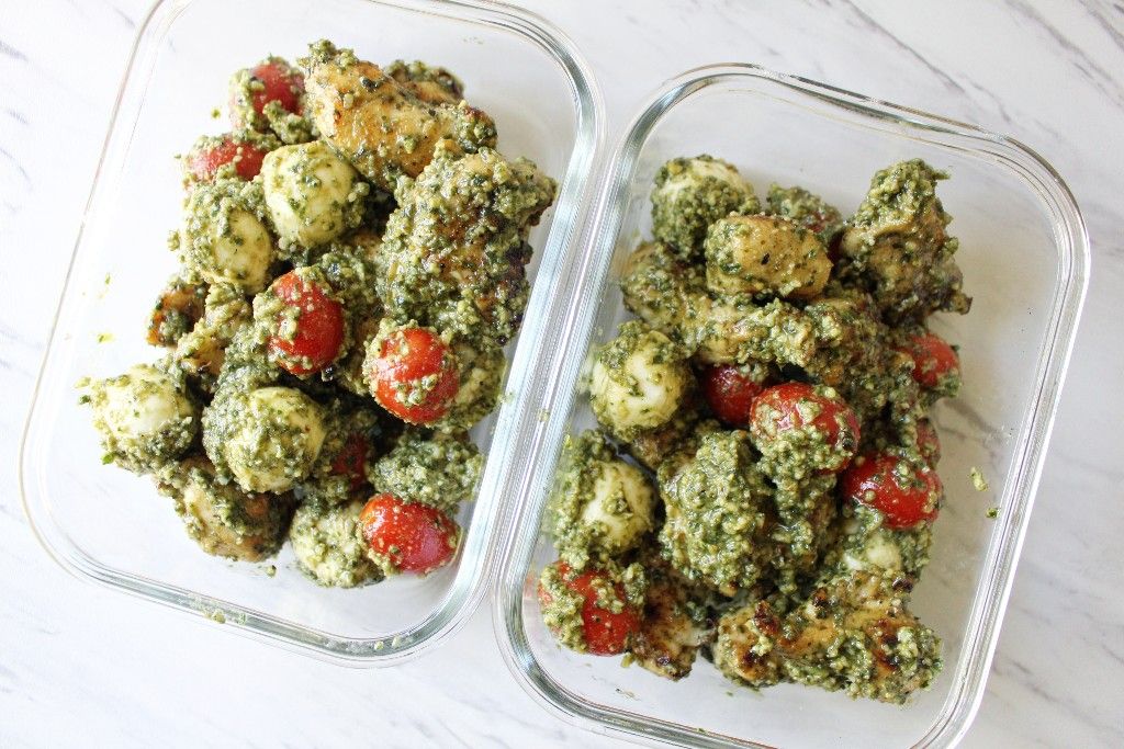 If you need to throw together some meal prepping fast, keep this Keto meal prep recipe in your back pocket! Bite-sized chunks of chicken are cooked to golden and drowned in a scratch-made pesto sauce. Your pesto sauce comes together in just 60 seconds but tastes just as good as grandma’s classic pesto. Some low-carb grape tomatoes and whole-milk mozzarella mixed into the chicken completes this super-easy meal. Just adjust the recipe to make as many servings as you want, and quickly portion your caprese mix amongst your meal prep containers. If you need a snack between meals, just divide these servings in half! You can keep the finished recipe stored in your refrigerator for up to 5 days for freshness.