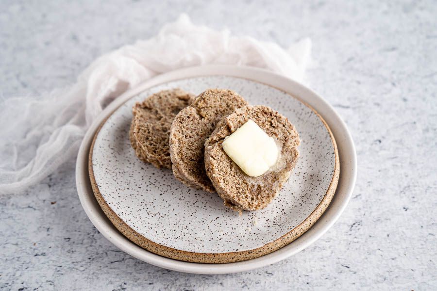 Once the bread is cooked and sliced, feel free to top the bread with grass-fed butter or nut butter to add more fats as your macros will allow.
