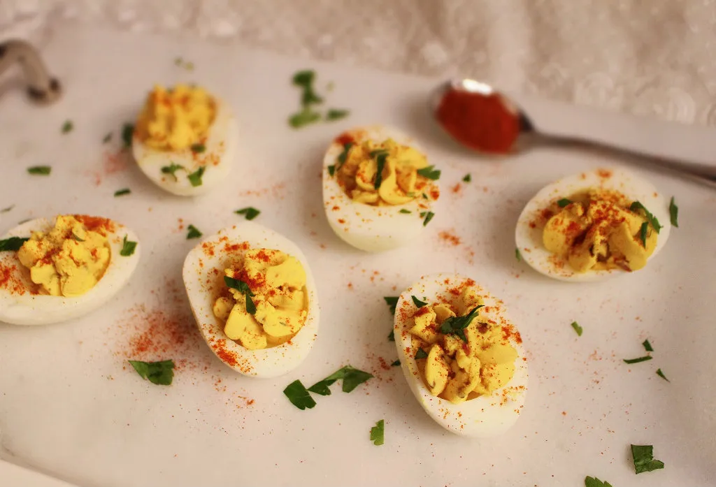 Nobody can resist the temptation of a sinfully delicious deviled egg. Of course, most recipes call for mayonnaise or a heaping ton of mustard and other sugary emulsifiers. With the perfect amount of dijon mustard and greek yogurt, you can still have a delightfully tangy and soft breakfast or snack. The deviled egg filling in this recipe is slightly more firm than what you may be used to, but it’s still smooth and satisfying.