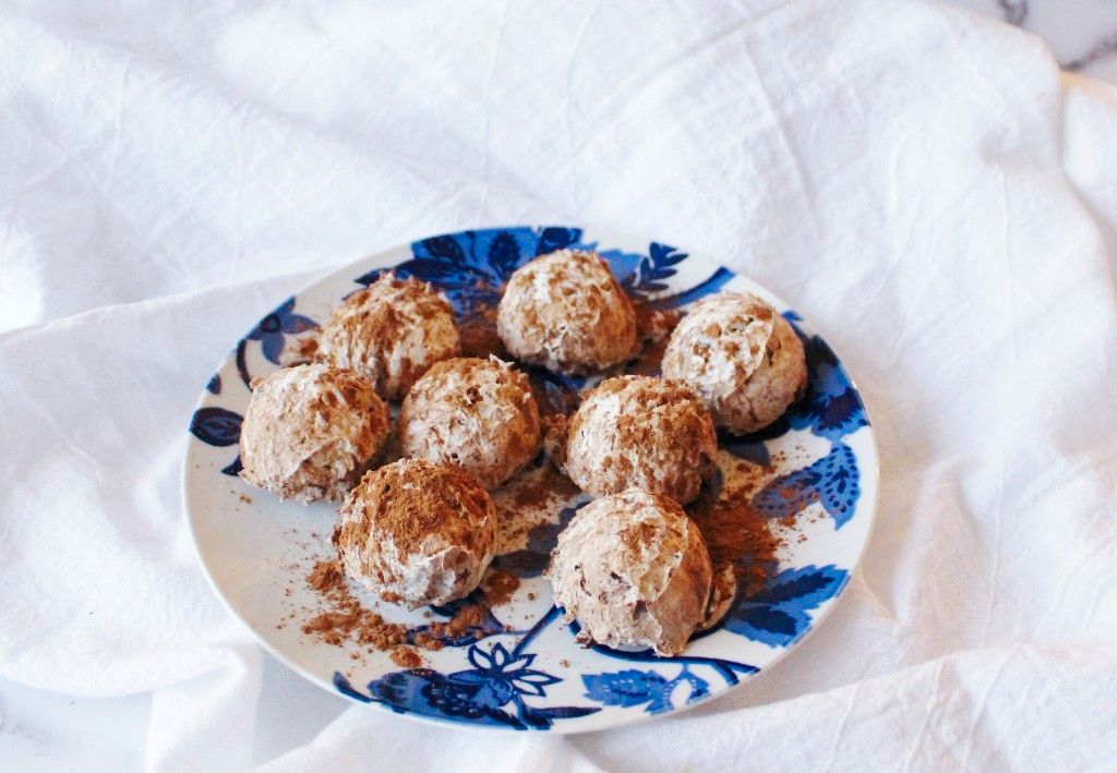 Place the bowl of cookies and cream mixture in your refrigerator to chill for 15 minutes. After chilling, scoop the mixture into 2-tablespoon portions and arrange them on a tray lined with parchment paper. You can either roll the fat bombs into balls or keep the scoop effect like photographed. Return the tray of cookies and cream fat bombs to a freezer to freeze for a minimum of 1 hour before eating.