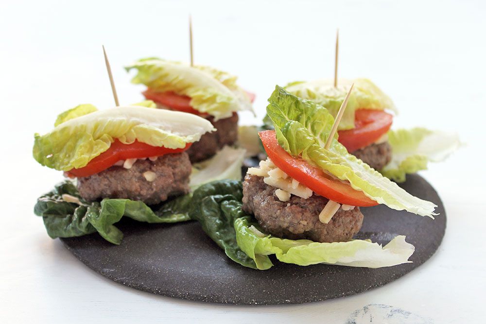 These deliciously simple mini burgers are loaded with ground beef, tangy cheddar and sweet tomatoes.