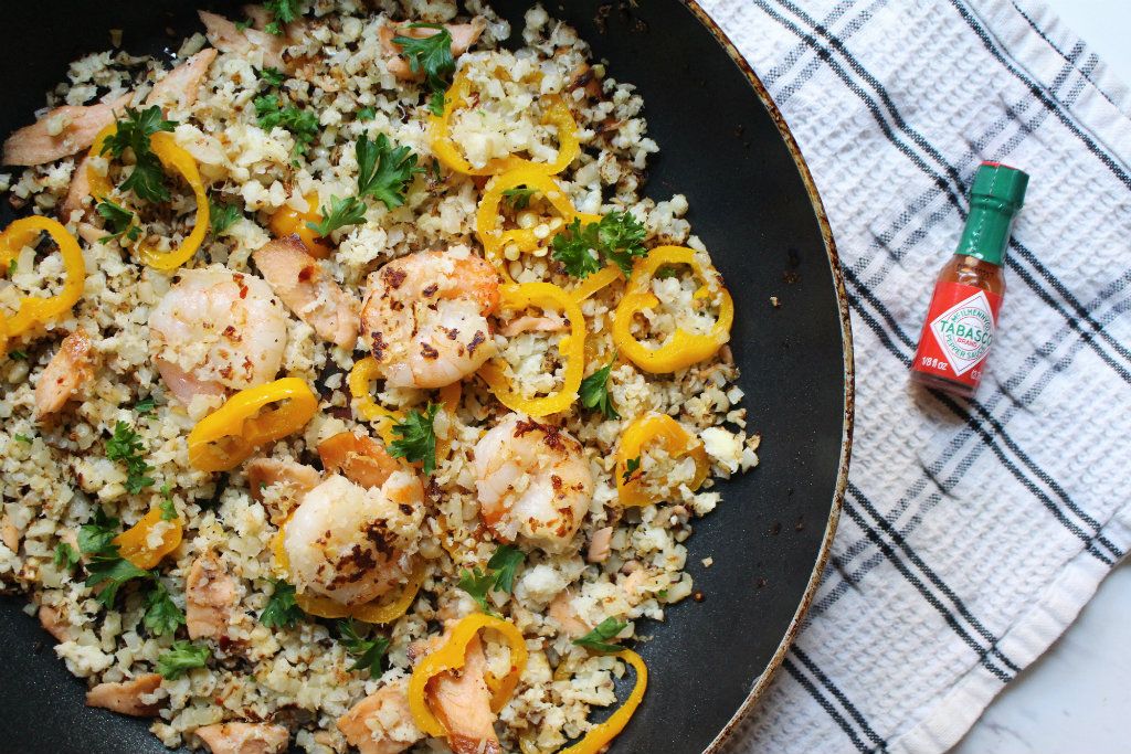 One of the best proteins you can include in your morning meal is seafood! Fish and shellfish not only provide you with protein, but they also are ‘swimming’ in fatty oils that have been shown to improve your cholesterol and heart health. This quick breakfast skillet combines underwater favorites like salmon, crab, and shrimp. Yum!