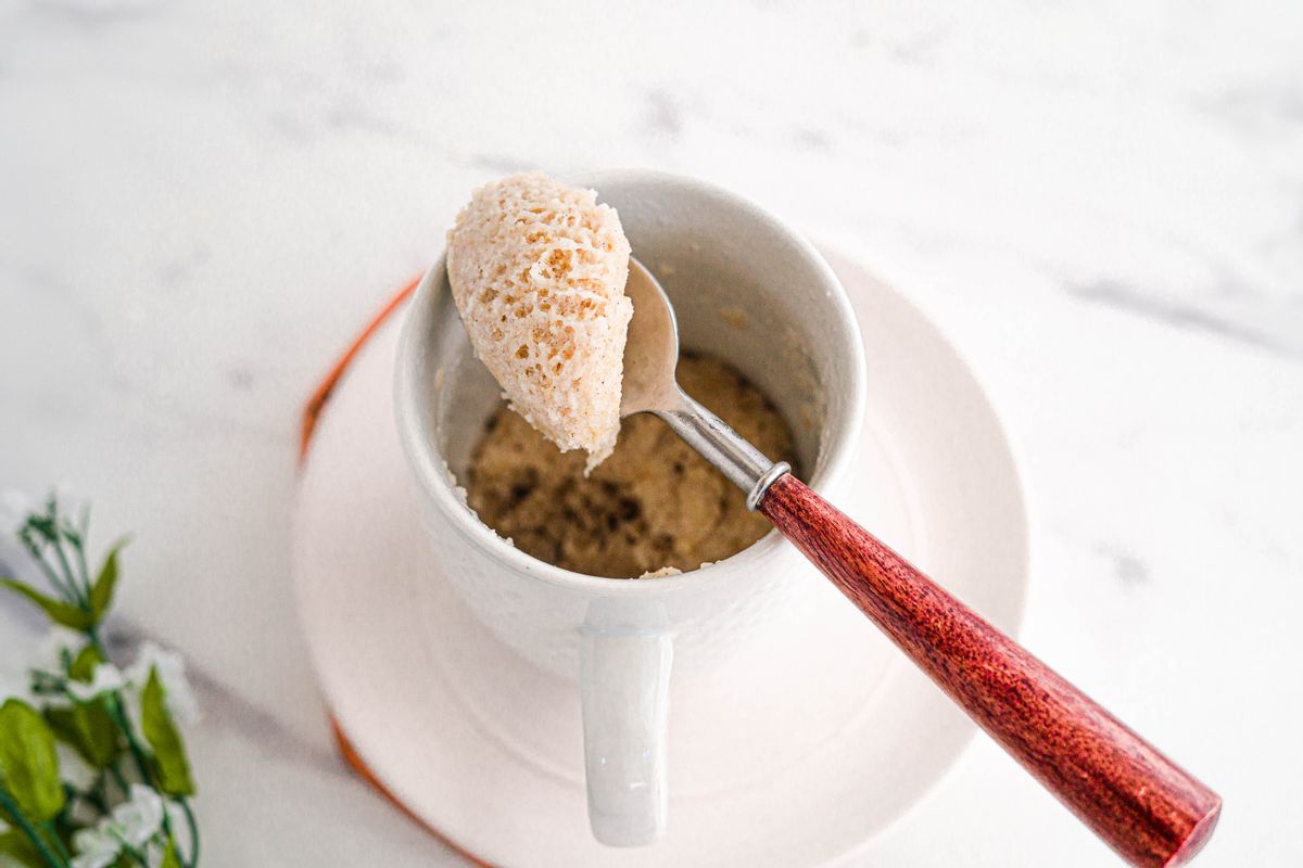 Place the mug into the microwave and cook on high for 1 ½ minute. The bread will puff considerably and then settle back down. Allow cooling slightly before serving directly from the mug.