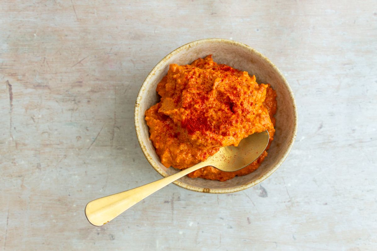 This Keto sauce recipe is our take on a classic romesco. Our quick and easy low carb romesco is prepared with blanched almonds, aromatic garlic, sweet sun-dried tomatoes, roasted bell pepper, a hint of lemon, and smokey paprika. The ingredients are pulsed to a paste then blended with extra virgin olive oil to create a rich and flavorsome sauce or dip. This low carb recipe is also Paleo-friendly.