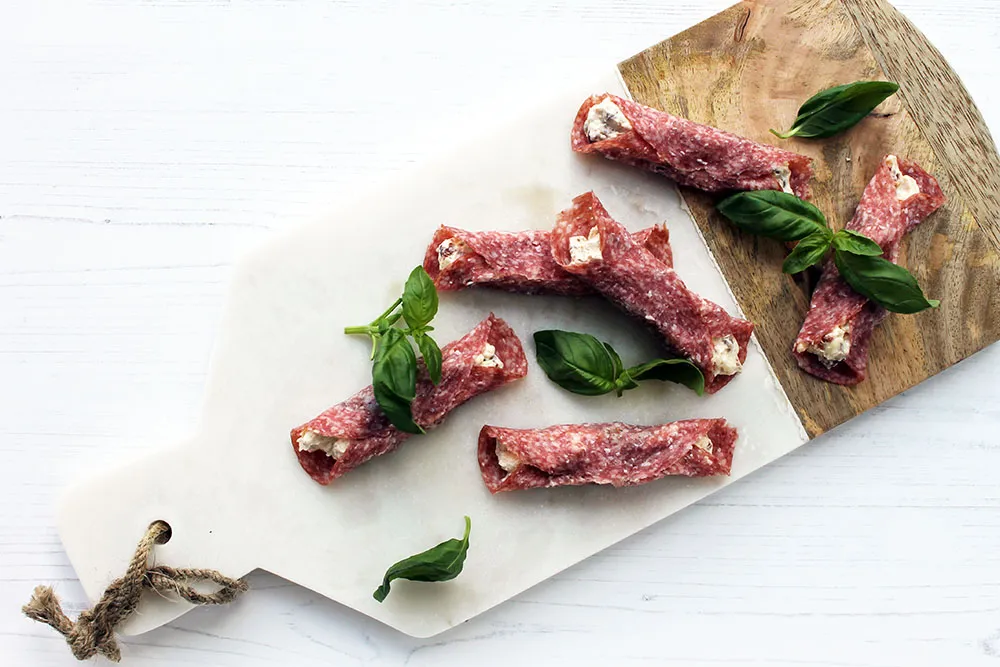 Fold the edges of the salami over so that they overlap, securing the filling inside. Refrigerate until ready to serve.