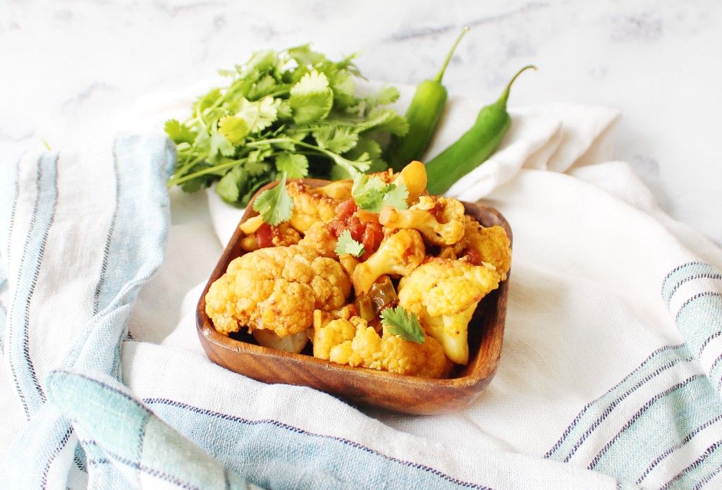 You may wish to simmer the aloo gobi for longer. In this case, you may need to add cups of water to your pan to keep the ingredients from burning. The longer you cook the aloo gobi, the more the flavors will melt together and the more tender the cauliflower will become. Serve aloo gobi hot with some simple cilantro or over cooked cauliflower rice.