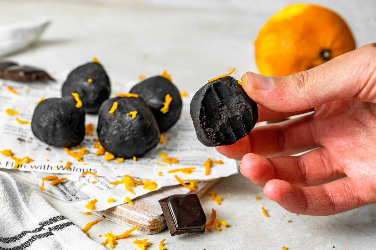 To make this tasty dessert, you need to add melted butter, unsweetened cocoa powder, powdered sweetener, orange extract, and a pinch of salt to a bowl. Mix everything until a dough forms. If the dough is crumbly, then you can add a tsp of water to help it bind. These Keto fat bombs are on the bitter side, so you can add a little more sweetener if you prefer. To shape these bombs, divide the dough into 5 pieces, and roll them into balls. Garnish with orange zest and serve.