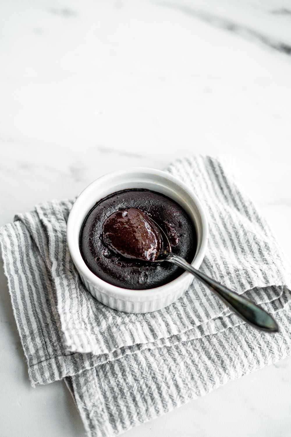 Bake the ramekins for 6-7 minutes or until the desired doneness is achieved. If you like a more “lava” center, bake for a shorter amount of time. Add additional minutes if you want a cake more well done. Allow to cool slightly before serving, but serve cakes warm.