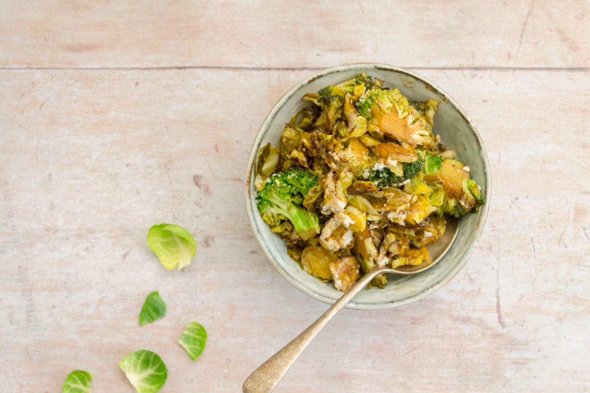 Keto Balsamic Sprouts and Broccoli with Goats Cheese