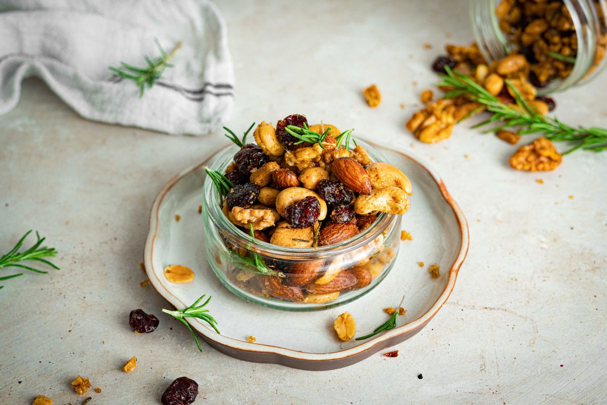New Year's Rosemary Roasted Keto Nuts and Cranberry Trail mix