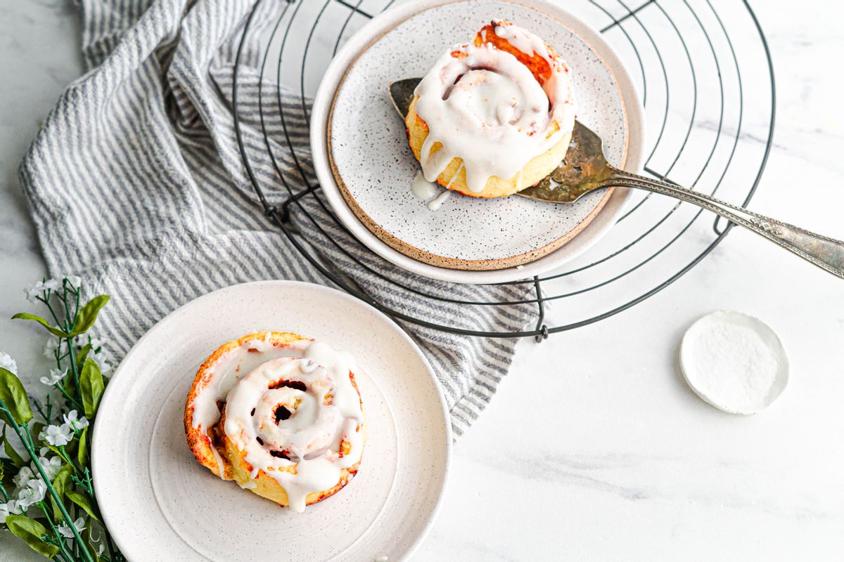 Bake the cinnamon rolls for 20-25 minutes or until they are golden brown. While the buns are baking, combine the powdered sweetener and milk. Spread this mixture on the hot cinnamon rolls to allow it to melt in. Serve warm.
