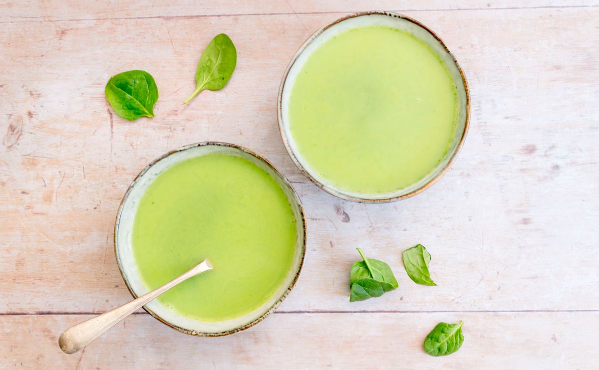 This vibrant spinach soup is blended with tender celery and shallots, a hint of lemon and garlic and finished with the richness of creme fraiche.