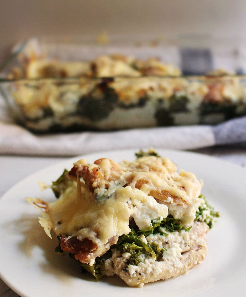 I made this and substituted Spinach for the Kale. It is delicious! Filling even with a small piece , it really hits the spot! Definitely making it again!