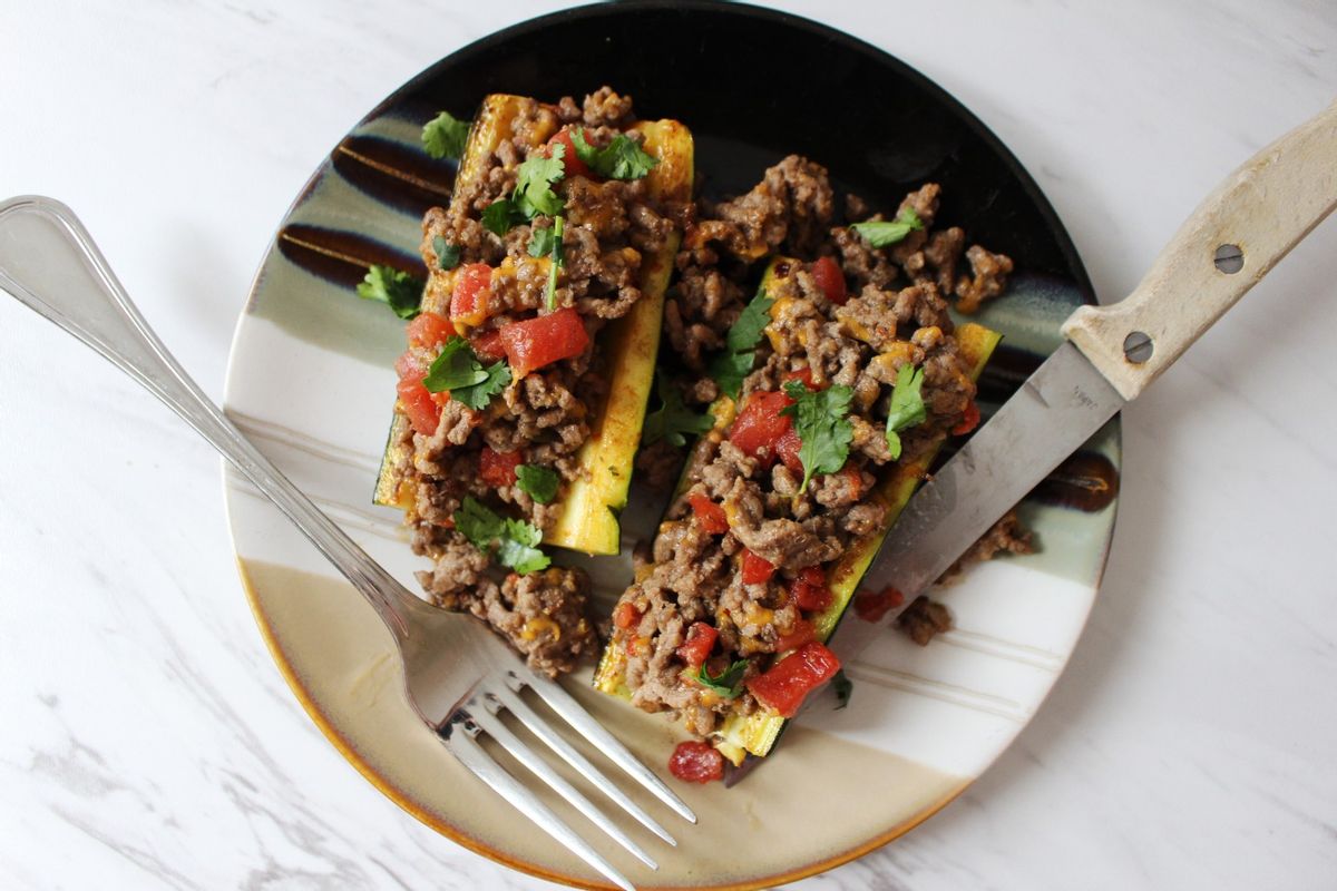 Flip over the zucchini shells and fill each one with the beef taco filling. Use a spoon to pack the shells with the filling so it adheres with the melted cheese. Serve immediately while hot.