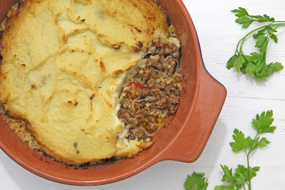 Spoon the beef mixture into an oven proof dish and top with the cauliflower mash.