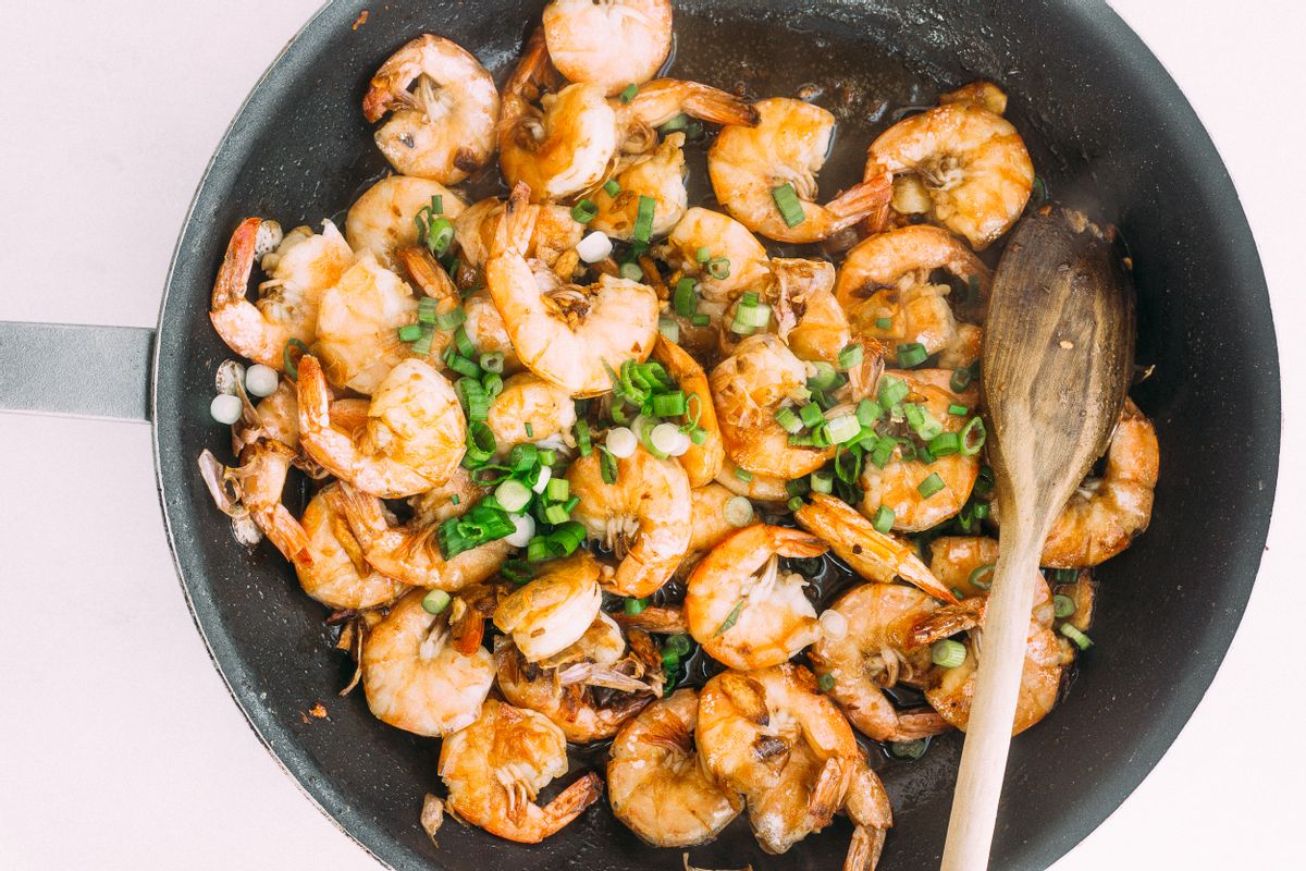 Cook until fully pink and then add the reserved toasted garlic. Stir and top with thinly sliced scallions. Serve immediately!