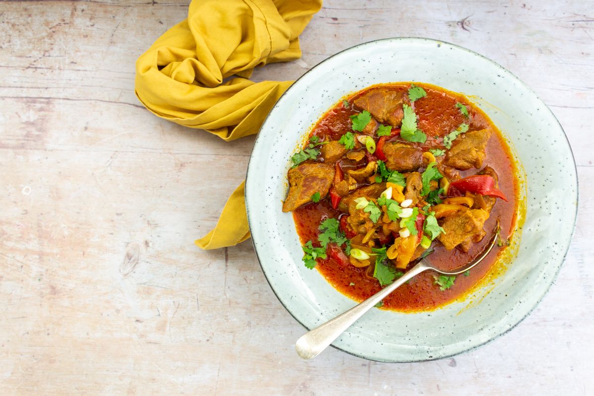 This low carb slow-cooked pork makes a deliciously warming Keto dinner recipe. Our easy Keto stew is prepared with diced pork, juicy bell peppers, aromatic garlic and scallions, fragrant coriander, and a sweet and tangy broth of tomato, maple-flavored syrup, tamari sauce, and chicken stock. This warming stew is prepared in one pot and simply left to cook slowly on the stove until the sauce is reduced and the pork is tender.